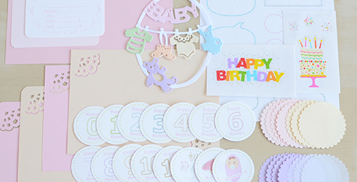 ベビーアルバムを手作りするパパママのために、装飾につかえそうなアレコレを集めてセットにしました♪